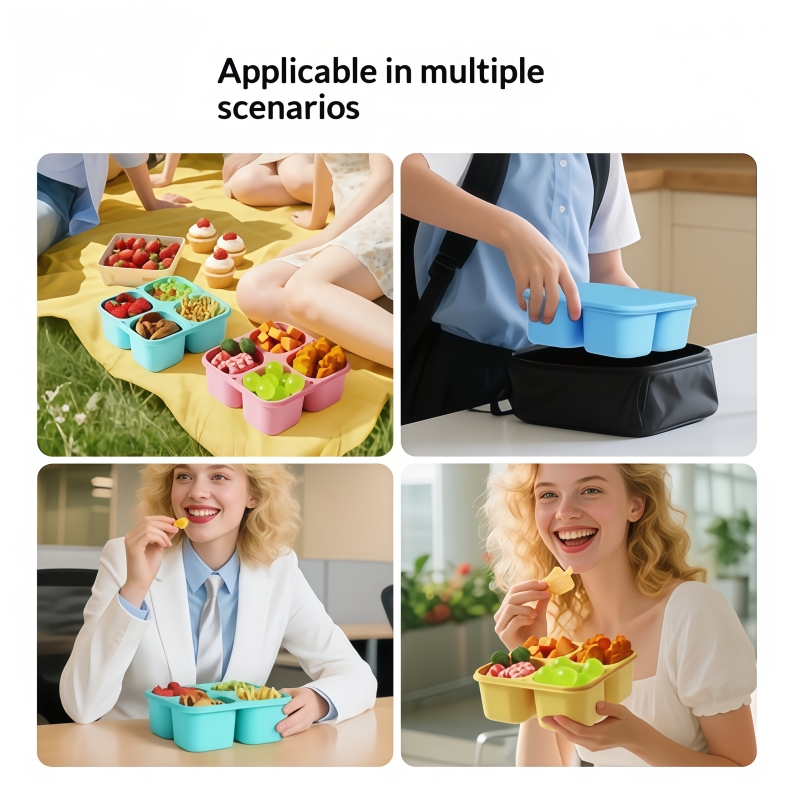 Made of FDA food-grade silicone, this 360° sealed container keeps cookies and chips crisp and delicious even after long storage. Flexible and shock-resistant, it automatically springs back when squeezed, making it worry-free for travel. Suitable for a wide temperature range of -20℃ to 230℃, it can withstand freezing, refrigeration, and microwave heating. The transparent box allows for easy viewing, eliminating the "blind box" experience. The foldable design saves up to 60% of storage space. Custom sizes, colors, and prints are available, transforming your snack box into a trendy personal item. Preserving freshness with every bite – a must-have for snack lovers!
