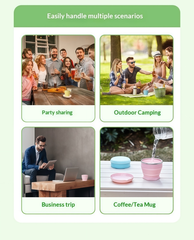 This silicone collapsible water bottle embodies minimalist aesthetics with its classic solid color design, combining lightweight portability with practical functionality. The spring-loaded folding structure saves space, and the food-grade material ensures safety and durability. Jiayuan utilizes mature technology to accurately replicate Pantone color charts, meeting your stringent color requirements. Whether for outdoor sports or daily commutes, it's the ideal companion for staying hydrated anytime.